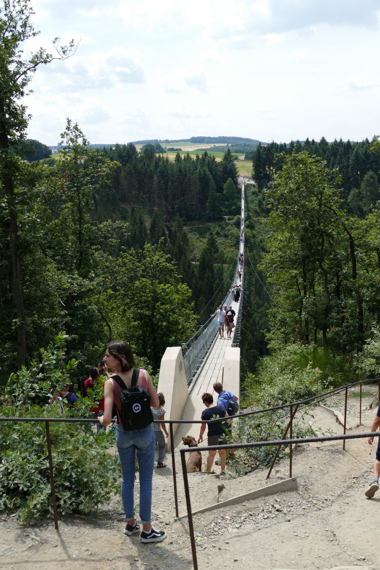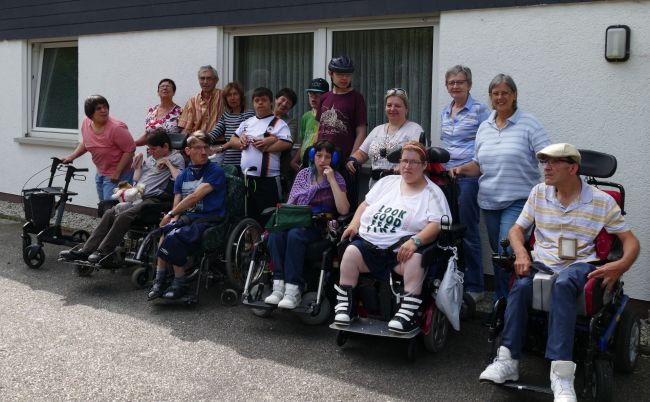 Erlebnis Seilbahn und Hängebrücke und danach Erholung im Freizeitzentrum Ferienreise des Vereins zur Förderung körperbehinderter Menschen Kreis Bad Kreuznach und Umgebung e. V. Eine Reise unseres Vereines ging in das Freizeitzentrum Erich-Doeffert-Haus in Büchenbeuren. Nach Belegung der Zimmer trafen sich die 17 Teilnehmer unserer Reisegruppe bei Kaffee und Kuchen zum kennenlernen. Als Selbstversorger mussten wir direkt auch den ersten Einkauf planen. Mit einem langen Einkaufszettel machten sich einige von uns auf den Weg zum nahe gelegenen Supermarkt. Die anderen erkundeten das Freizeitzentrum mit seinem großen Waldgrundstück und seinen Spielangeboten. Der erste Tag endete mit einem schmackhaften Essen und mit der Planung für die nächsten Tage. Ein Ausflug führte uns nach Koblenz an Rhein und Mosel. Vom Deutschen Eck aus flanierten wir zur Seilbahn. In den barrierefreien Gondeln überquerten wir den Rhein. Beeindruckt von der Technik und der Aussicht genossen wir die Fahrt zur Anlage Ehrenbreitstein. Dort war der Aussichtsturm unser nächstes Ziel. Die Rollstuhlfahrer konnten auf der langen und schmalen Rampe zur Spitze ihre Fahrkünste zeigen. Direkt am nächsten Tag ging es zu der grandiosen Hängeseilbrücke Geierlay nach Mörsdorf. Über den 1.5 km langen Zuweg erreichten wir die Brücke. Für die Rollstuhlfahrer gab es leider keinen Zugang. Sehenswert war jedoch das 100m hohe Bauwerk. ach diesen Ausflügen erholten wir uns in unserem Domizil und sorgten für unser körperliches Wohlbefinden. Eifrig wirkten die Helfer unter den Augen von Iris bei der Zubereitung unserer abwechslungsreichen Mahlzeiten mit. Dazu gehörte auch ein Grillabend mit leckeren Salaten und Beilagen. Das Holz für das Grillfeuer wurde im Wald gesammelt. Das Zielwerfen mit Tannenzapfen lockerte diese Tätigkeit auf. Nach all diesen Aktionen hatten wir uns am Tag vor der Abreise einen Ausflug zu einem feinen Eissalon in Kirchberg redlich verdient.