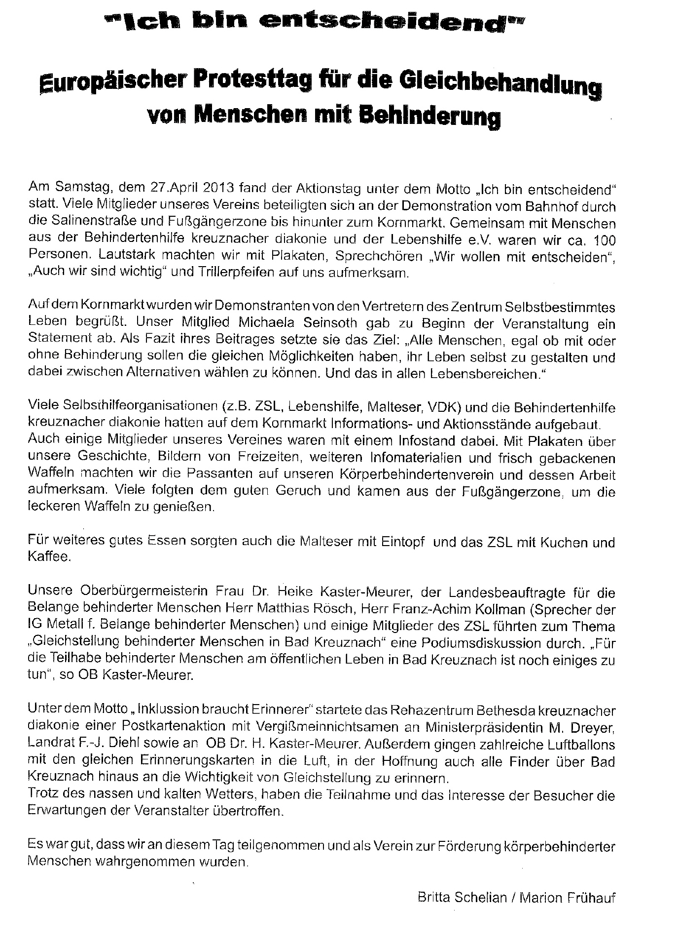 - 2006 haben wir uns mit einer großen Aktion in Bad Kreuznach am Europäischen Tag der Menschen mit Behinderungen beteiligt. Mehr dazu... [191 KB]