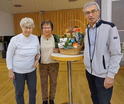 Im Rahmen der Mitgliederversammlung am 08.12.2024 überreichten die stellvertretenden Vorsitzenden Hildegard Kollay und Jürgen Ruß im Namen der Vereinsmitglieder Frau Hohendorf in dankbarer Anerkennung für ihr beispielloses Engagement für Menschen mit Beeinträchtigungen einen Präsentkorb.