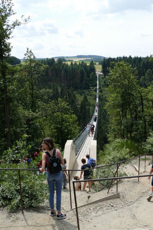 Direkt am nächsten Tag ging es zu der grandiosen Hängeseilbrücke Geierlay nach Mörsdorf. Über den 1.5 km langen Zuweg erreichten wir die Brücke. Für die Rollstuhlfahrer gab es leider keinen Zugang. Sehenswert war jedoch das 100m hohe Bauwerk.